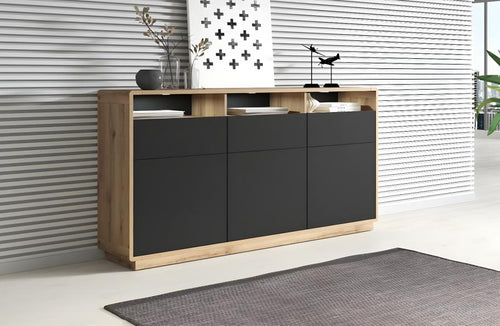 90x190 cm faux leather bed with drawers - with LED and wired/wireless charging ports - Black 05887LSOM